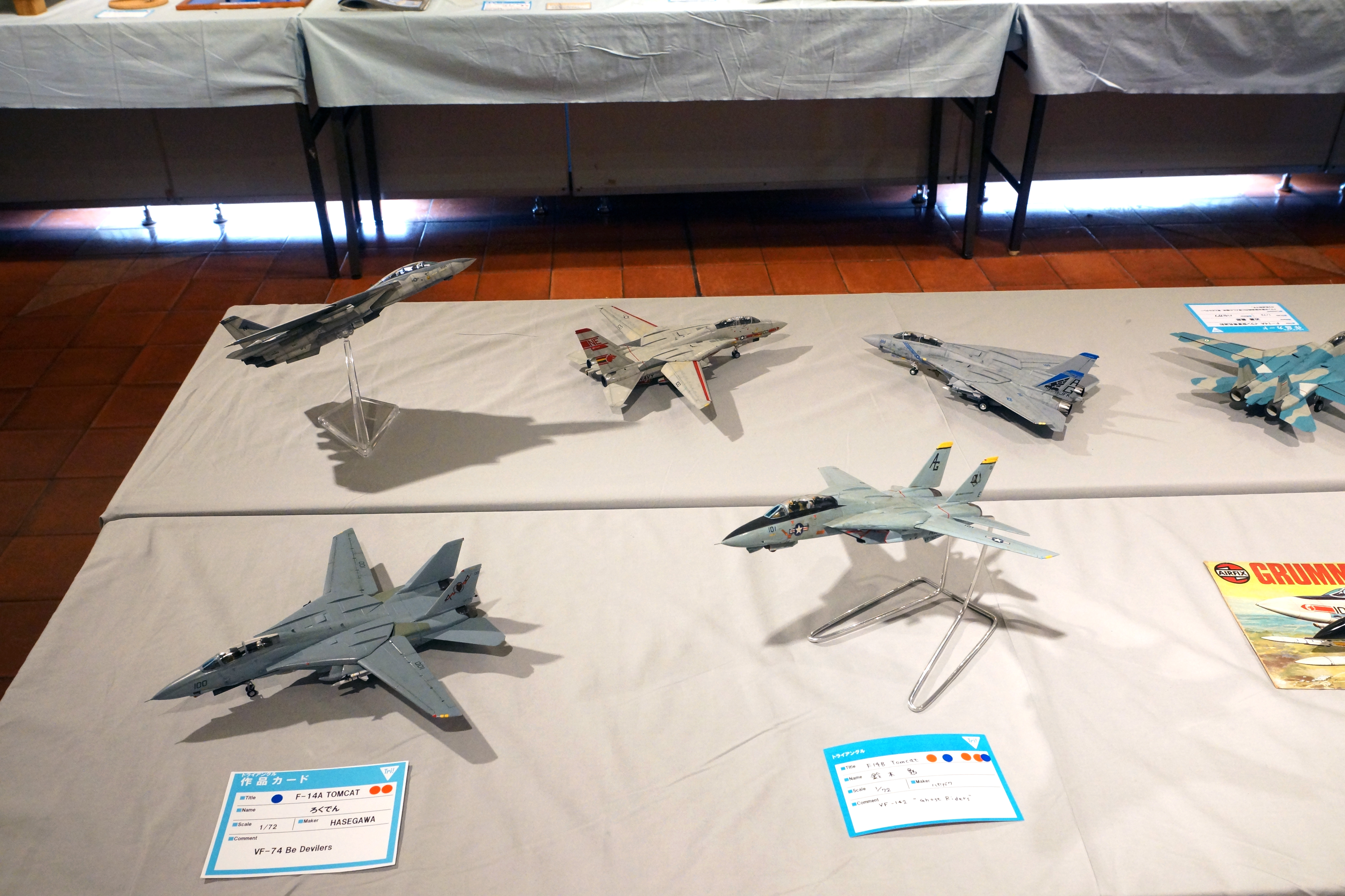 すべて1:72スケールで揃ったF-14の各バリエーション。展示機体のほとんどはハセガワ製またはフジミ製ですが、AIRFIXの懐かしいキットもあります。