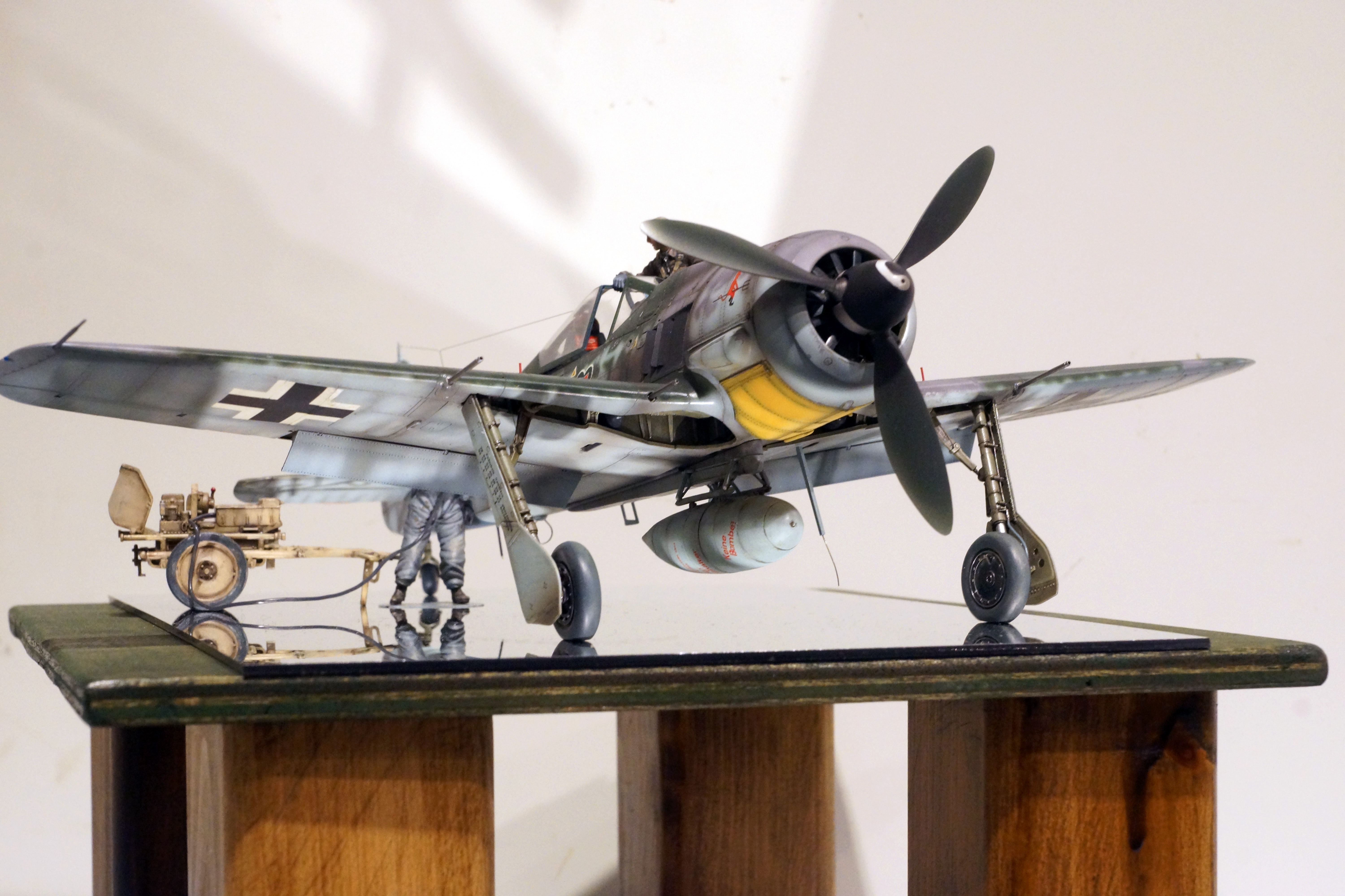 雨上がりの飛行場を再現、トラクター等はすべて自作だそうです。