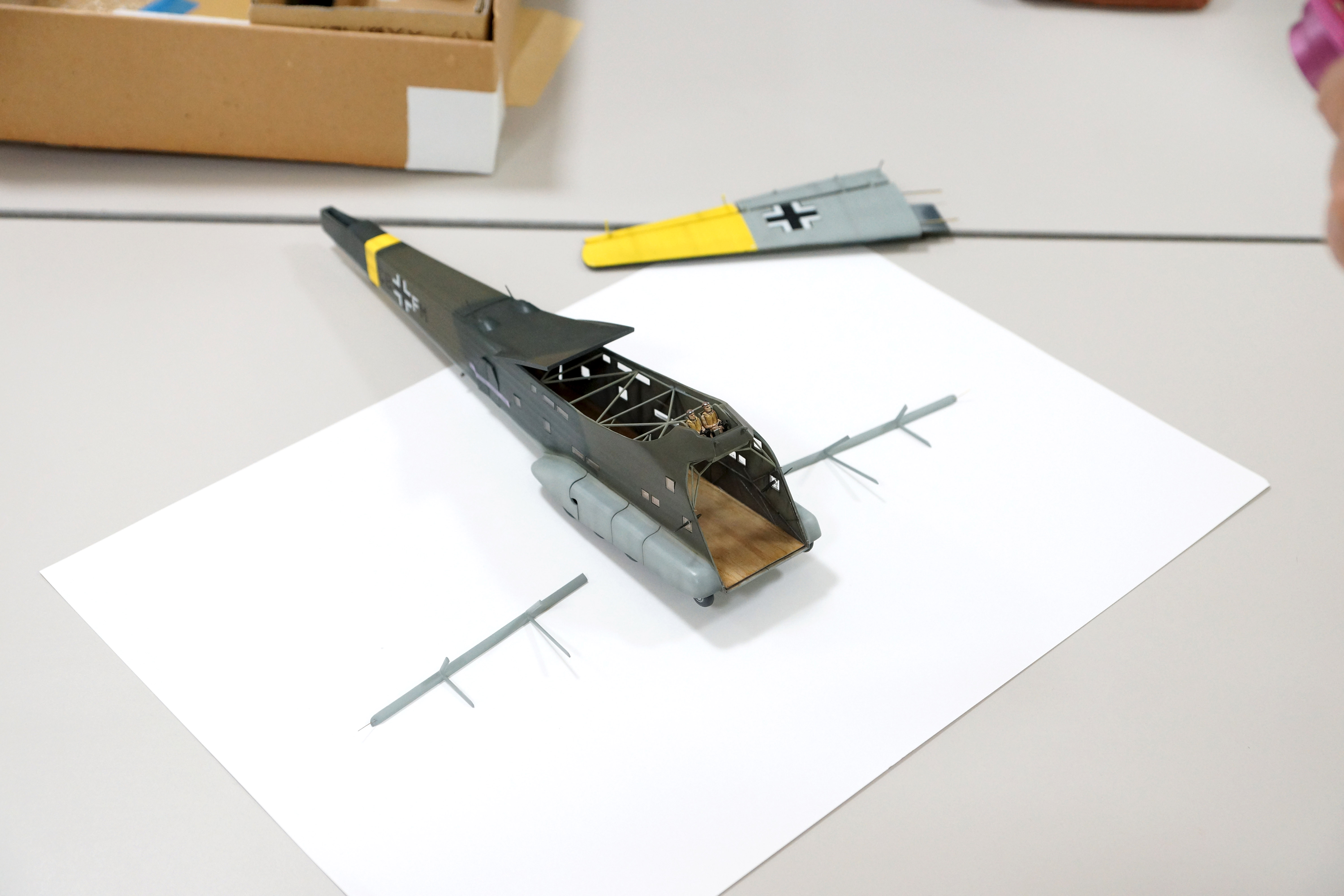Step-5 主翼と胴体の支柱を取り付けて、尾翼部分を取り付け。