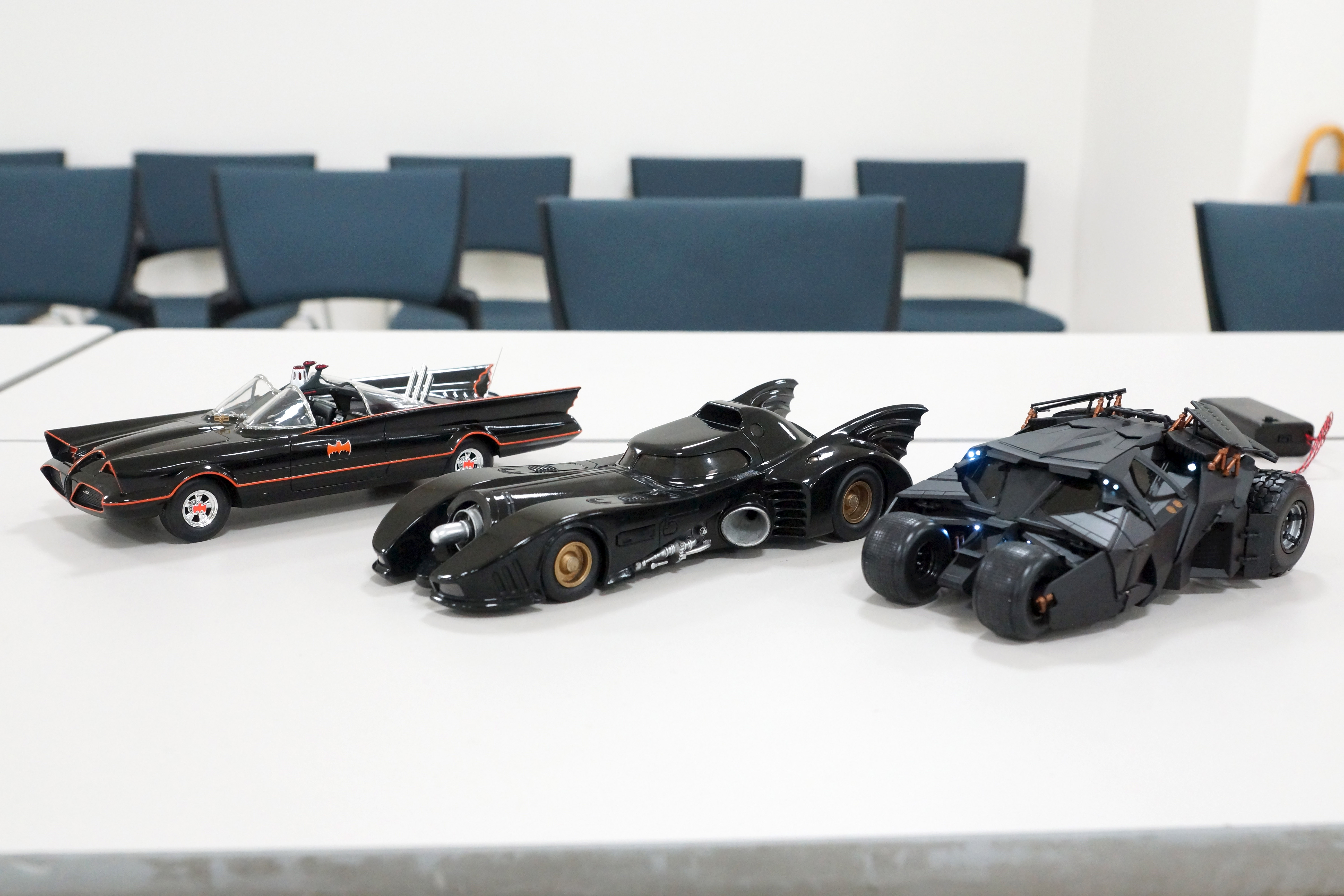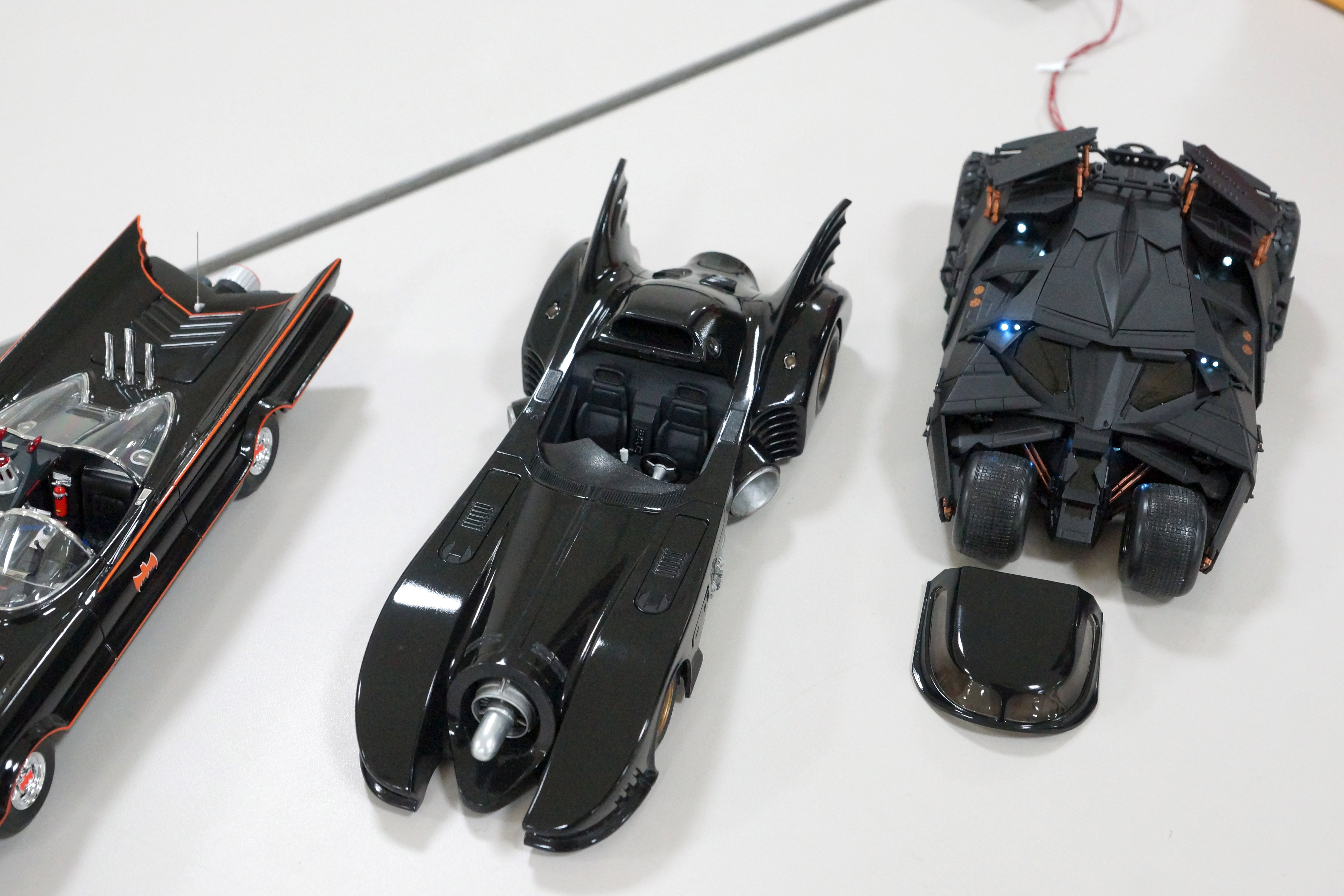 車などのカテゴリー分けされたテーブルレイアウトのため、別テーブルに飾っていたバットモービル3世代