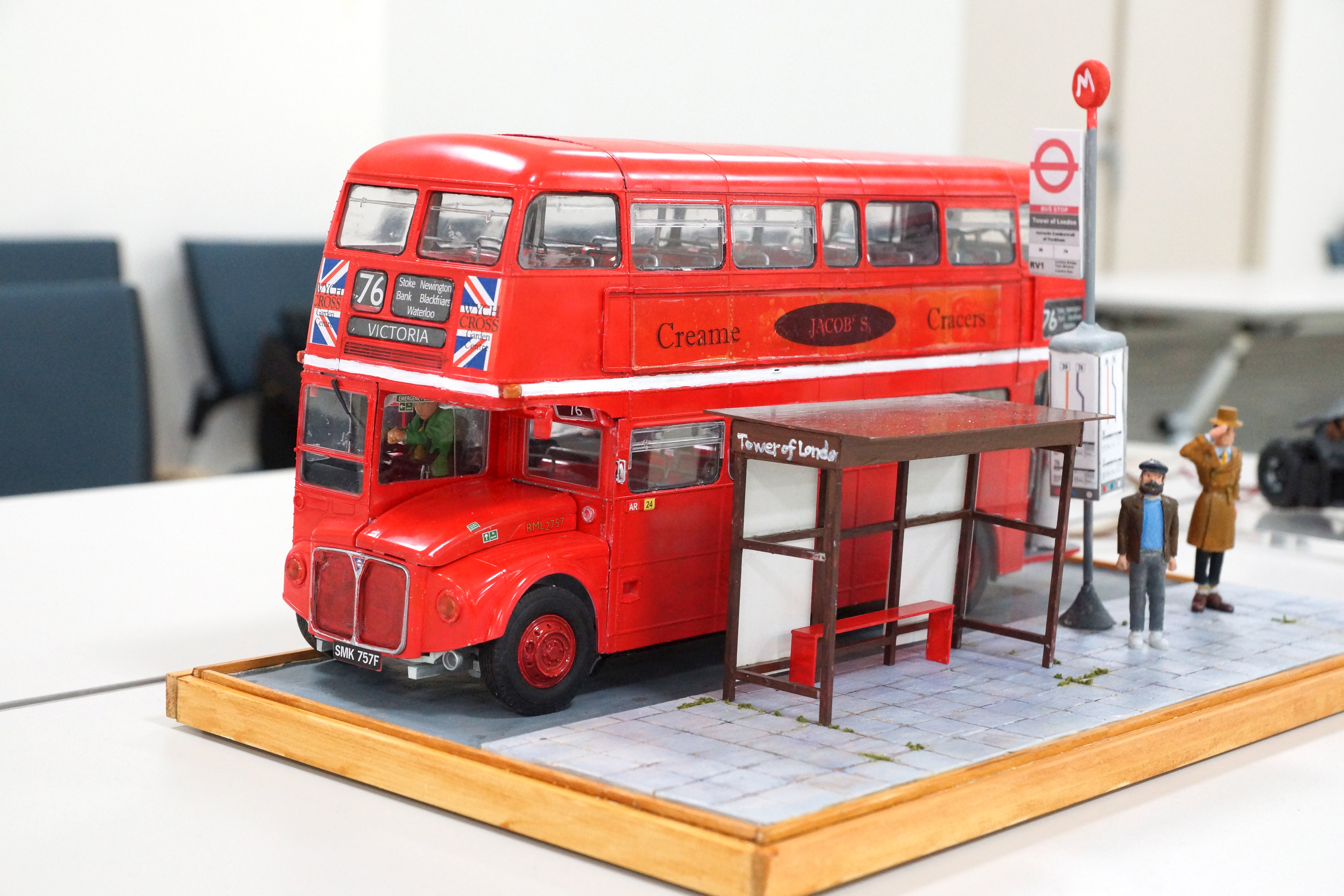 ロンドンバス。どこかで見たようなキャラクターがドライバーズシートに